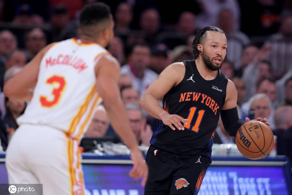尼克斯队首发:杰伦-布伦森、OG-阿奴诺比、卡尔-安东尼-唐斯、约什-哈特、米卡尔-布里奇斯
